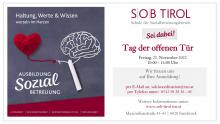 Die SOB Tirol – Schule für Sozialbetreuungsberufe lädt sehr herzlich zum Tag der offenen Tür ein.
